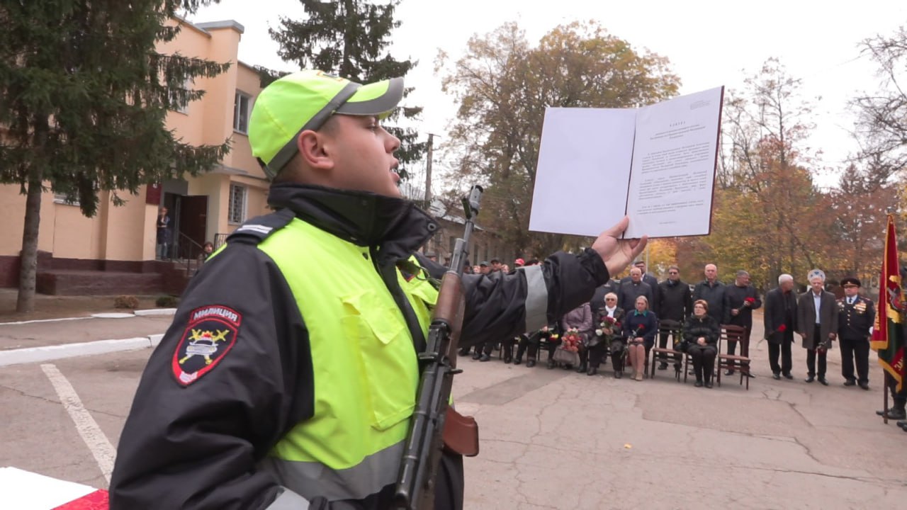 В Бендерах прошло торжественное построение сотрудников милиции. Семь молодых специалистов приняли Присягу, пополнив ряды ГАИ и дежурной части — тех, кто ежедневно стоит на страже порядка и безопасности граждан. Приветствия по случаю профессионального праздника звучали из уст городских властей.